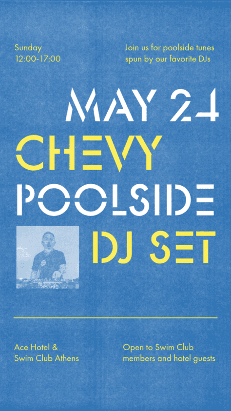 SUNSET SERIES is bringing world-class selectors to the Athenian Riviera. From golden hour into the night, join us at Ace Hotel & Swim Club Athens, April through September, for poolside revelry. This September, we welcome Satori to the decks. Plus, Athenian duo Carayas & Efrem on warm-up duty. For event table reservations, email fb.ath@acehotel.com or