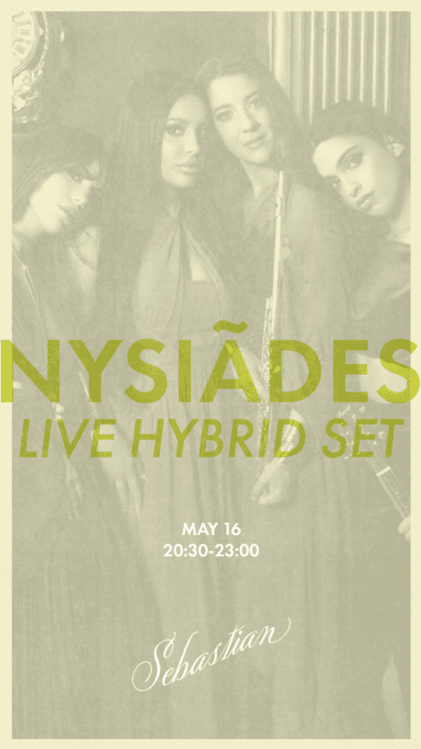 Where ancient soul meets electronic pulse. Join us at Sebastian for a live set unlike anything you’ve seen or heard before, with one of the most exciting acts in the electronic world right now. Performing live, Nysiādes, residents at London’s iconic Bacchanalia, bring 14 million streams, stages across three continents, and a sound that defies eve