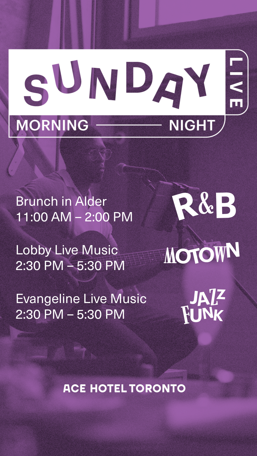 Sundays at Ace are made for music. Ease into brunch at Alder with live R&B sets from 11AM–2PM.